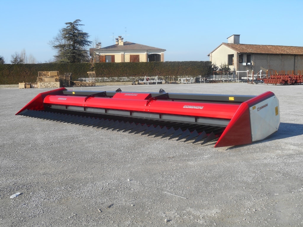 - Низкий профиль жатки Доминони обеспечивает подбор культуры даже в тяжелых условиях.